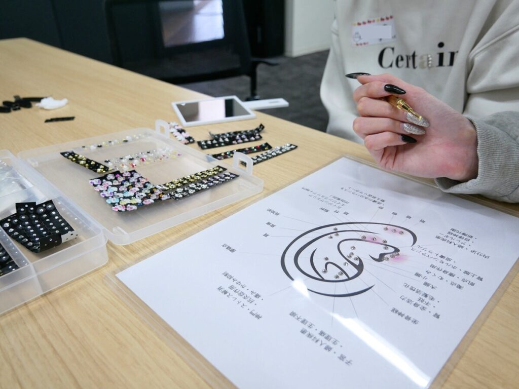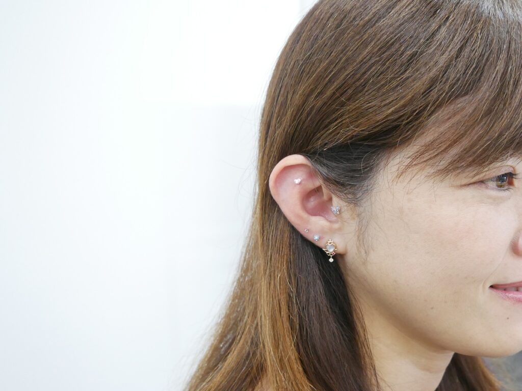 耳つぼジュエリーは、目が輝くようなキラッしたかわいいパーツを選び、耳つぼをやさしく刺激して、健康にアプローチしながらおしゃれも楽しめるものです