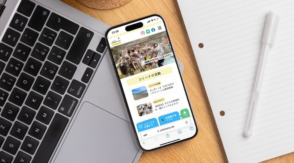 SNSでコトハナを知り、「もう少し詳しく知りたい」と思ったときにWEBサイトで活動の内容をゆっくり見てもらえる。